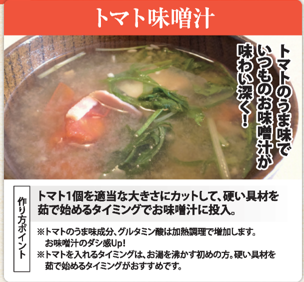 ■毎日のリコピン摂取をお味噌汁で!油揚げなどを加えると油溶性のリコピンの吸収率UP!